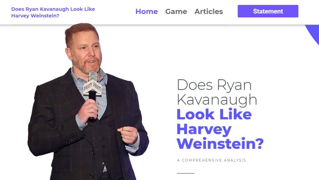 Klein created a website at doesryankavanaughlooklikeharveyweinstein.com that compares Kavanaugh’s looks to those of the disgraced Weinstein and discusses some of Kavanaugh’s history, including DUI charges.