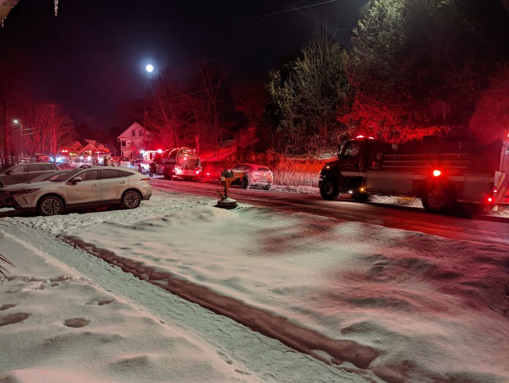 There were about 10 fire truck and other vehicles parked outside my house. It was about 4 in the morning. I could see more up the hill, where the road curves to the left at the edge of this pic.